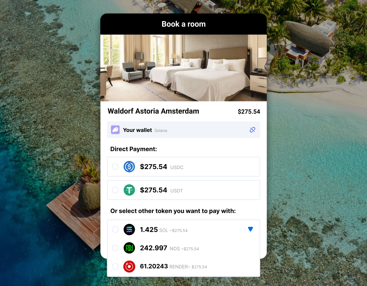 Let your customers pay with what they already hold, from Ethereum to Solana and everything in between.